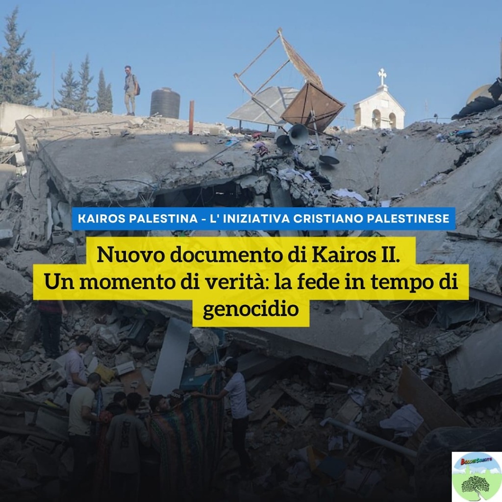 La redazione di Bocche Scucite ha tradotto in italiano il nuovo documento dell’iniziativa cristiano palestinese Kairos Palestina “un momento di verità: la fede in tempo di genocidio” SCARICA IL DOCUMENTO IN PDF Un momento di verità: la fede in tempo di genocidio L’iniziativa cristiano-palestinese Kairos Palestina Guardiamo al giorno in cui potremo vivere liberi nella…
