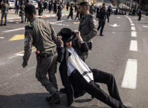 Articolo pubblicato originariamente su Middle East Eye. Traduzione a cura della redazione di Bocche Scucite Di Daniel Tester Foto di copertina: Le guardie di frontiera israeliane allontanano un uomo ebreo ultraortodosso durante una protesta davanti a un ufficio di reclutamento dell’esercito a Kiryat Ono, vicino a Tel Aviv, il 28 gennaio 2025 (AFP). L’esercito ha…