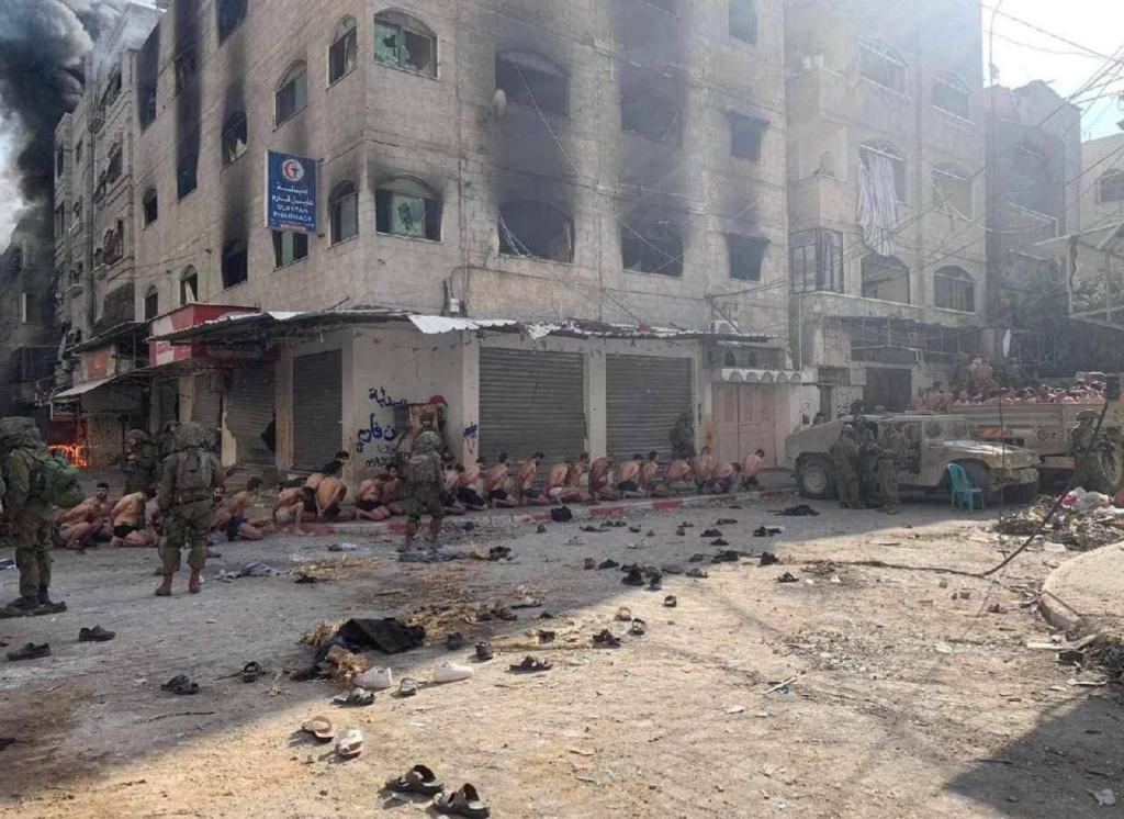 Secondo le testimonianze, i soldati hanno ordinato a tutti gli uomini di spogliarsi, li hanno riuniti in un unico luogo e hanno scattato le foto che sono state poi diffuse sui social media (alti funzionari israeliani hanno poi rimproverato i soldati per aver condiviso le immagini). Alle donne e ai bambini, invece, è stato ordinato di recarsi all’ospedale Kamal Adwan.