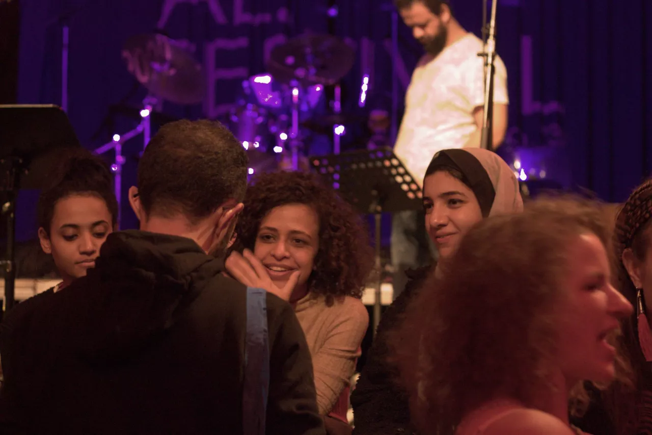 Iniziata alle 19, la serata è proseguita, com’è consuetudine a Berlino, fino alle 6 del mattino. Il pubblico? Molto ampio e variegato. Persone queer accanto a giovani donne con il velo, e anche se la presenza era in maggioranza araba, la notorietà del luogo ha attirato anche un pubblico tedesco curioso di scoprire una musica a lui sconosciuta. Un pubblico eterogeneo che ricorda quello abituato a questo genere di concerti a Parigi. Se esiste una certa forma di settarismo per gli eventi organizzati a Berlino da arabi per arabi, siamo molto lontani dalla ghettizzazione che c’è a Parigi. Anche nei quartieri popolari della città, c’è una forma d’integrazione sociale, e non è raro incontrare donne col velo nei quartieri più trendy della città, come Prenzlauer Berg o Mitte.