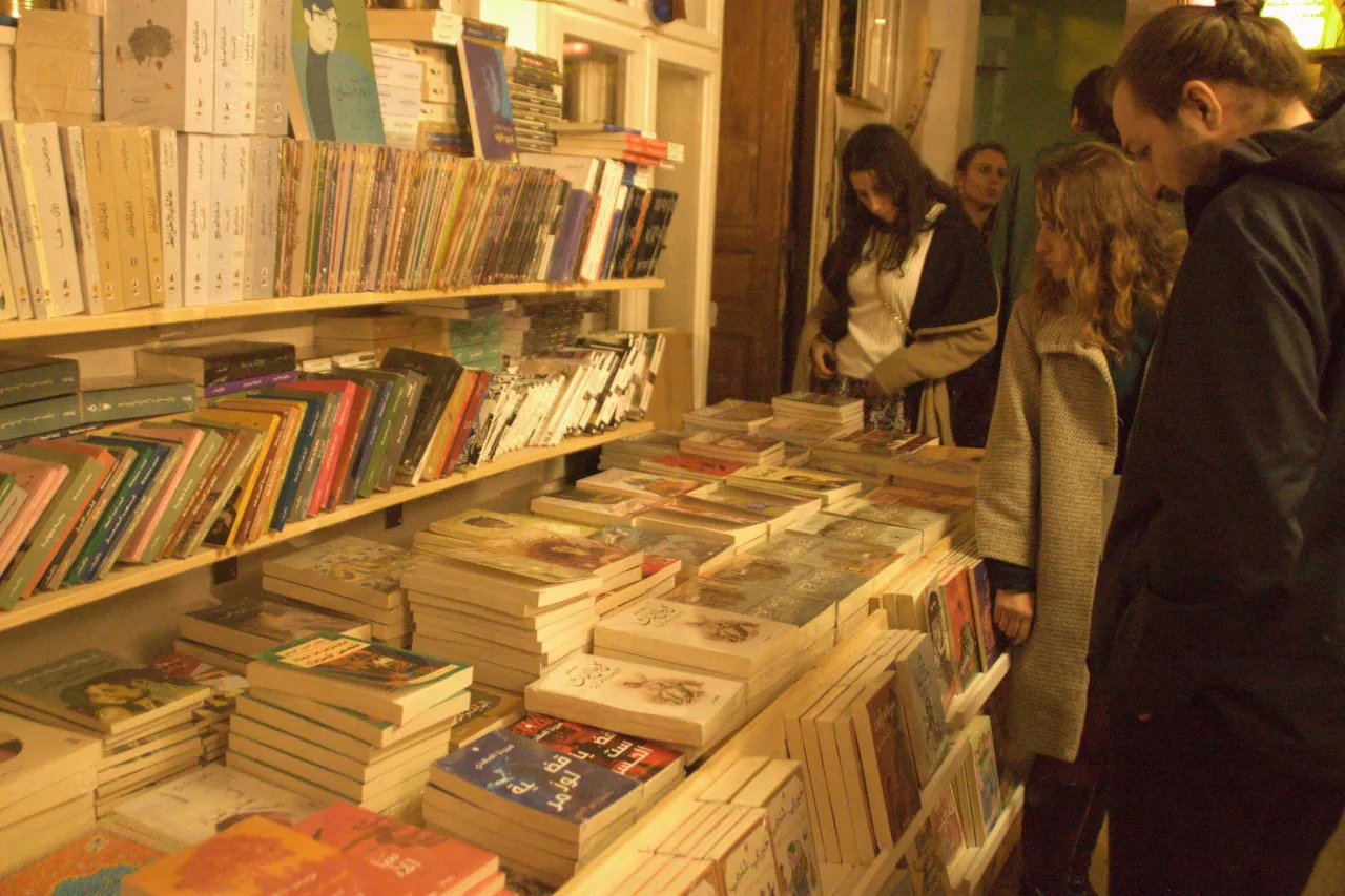 “Quest’idea è nata da una reale necessità”, dice Fadi, che vive in Germania da 20 anni ed è anche uno dei co-fondatori del Festival del cinema arabo di Berlino (“Al Film”). È proprio il festival che lo porta nel 2009 da Lipsia alla capitale tedesca, progetto però che, nel 2020, ha abbandonato per dedicarsi alla libreria, che oggi conta tra i suoi scaffali più di 4.000 titoli. Malgrado sia nel cortile interno di una palazzina, il passaparola sta funzionando e il pubblico accorre puntuale ad ogni appuntamento. Lo scorso sabato sera, si è tenuto un incontro nel cortile – per ragioni di spazio – con Khaled Fahmy, storico egiziano ed esperto del XIX secolo. C’erano almeno 70 persone – molte in piedi, nel freddo, mentre calava la sera – che ascoltavano lo studioso in religioso silenzio prima che il dibattito si prolungava. Tra i presenti c’era anche Saleh Dabbah, farmacista di Acri nella vita civile e critico cinematografico nel tempo libero: “Sono venuto qui per incontrare il mondo arabo”, dice parlando di Berlino. Parlando con Mayssoun, una palestinese d’origine giordana che lavora in libreria, scopriamo di avere alcune conoscenze un comune, tra Haifa, Beirut, Parigi e Tunisi. “Non ci credo che veniamo da paesi diversi!”, dice sorridendo.