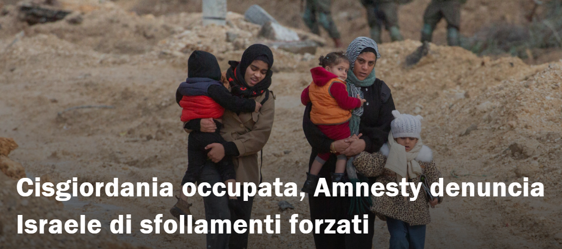 “Israele deve porre fine immediatamente a tutte le pratiche illegali che conducono allo sfollamento forzato della popolazione palestinese, tra cui gli attacchi contro aree residenziali, la distruzione di proprietà e infrastrutture e le diffuse restrizioni all’accesso e alla libertà di movimento imposte alla popolazione. Alcune di queste misure costituiscono punizioni collettive, anch’esse vietate dalla Quarta Convenzione di Ginevra. Queste azioni fanno parte di un più ampio schema di politiche e pratiche illegali con cui Israele mira a espropriare, dominare e opprimere la popolazione palestinese della Cisgiordania, nel contesto di un sistema di apartheid spietato”, ha proseguito Erika Guevara Rosas.