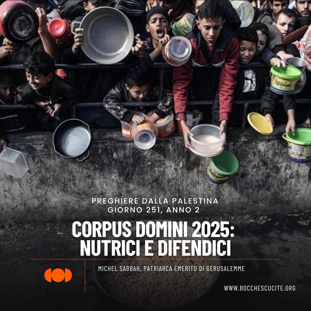 Il mondo guarda attonito al cielo del Medioriente attraversato da missili e droni e tu, Signore, guardi ancora alla Terra santa come quel giorno alla folla affamata e ci dici: “Voi stessi date loro da mangiare!”.