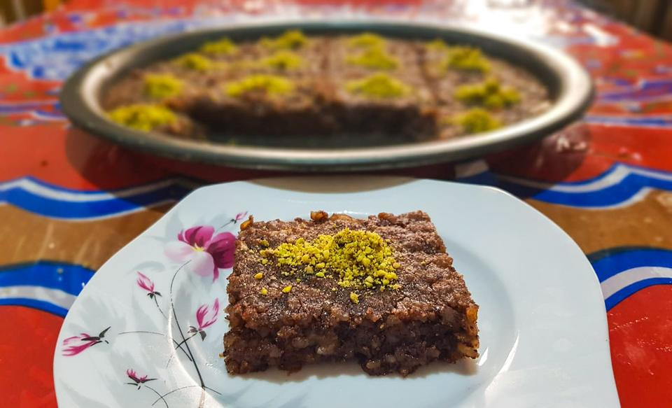 Si prepara con bulgur – un tipo di grano – imbevuto di ghee e mescolato con noce moscata o cannella, con uno strato di sciroppo dolce e noci in cima.