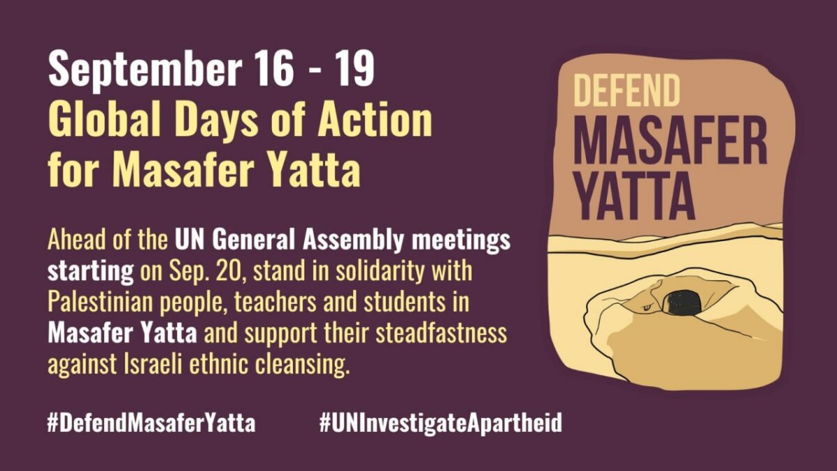 Chiediamo una mobilitazione globale dal 16 al 19 settembre in solidarietà con i palestinesi di Masafer Yatta per sostenere la loro resilienza e resistenza di fronte all’intensificazione della pulizia etnica da parte dell’Israele dell’apartheid.