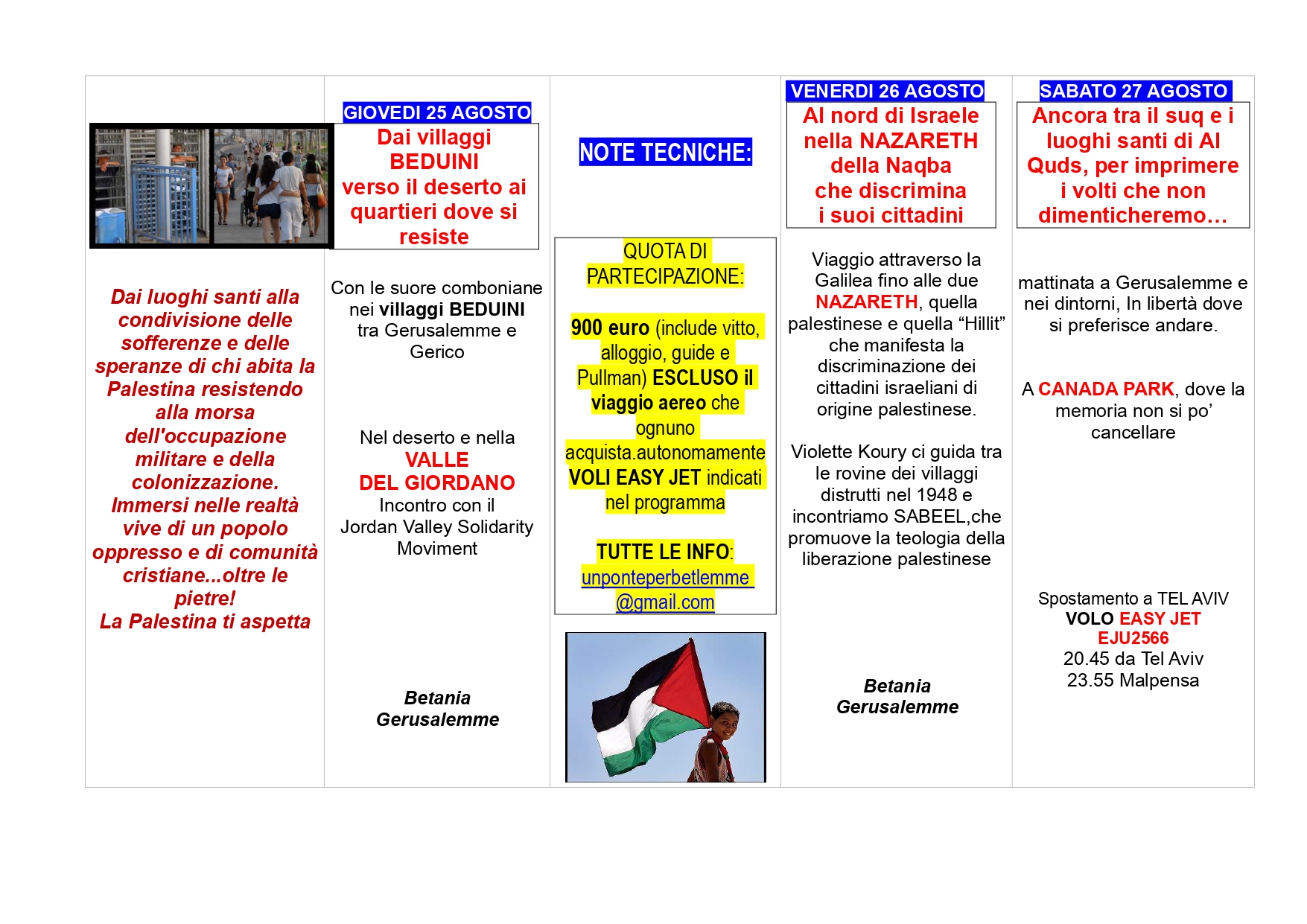 Per info, programma e iscrizioni unponteperbetlemme@gmail.com