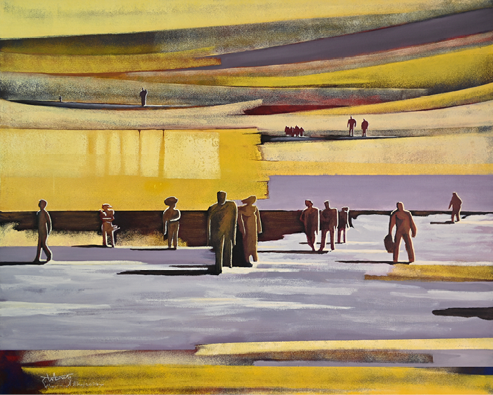 Davanti all’acrilico su tela “Immigration”, opera del gazawi Mohammed AlHaj, il visitatore resta turbato dalle linee delle figure in movimento, dalle direzioni e dalle distanze che rievocano la diaspora forzata dei palestinesi e l’alterazione dei paesaggi mentre la dimensione temporale è resa da sfumature di colori. Sue anche due sculture realizzate con tecniche sostenibili attraverso l’uso del cartone, una delle quali si intitola “Women’s March” 2021.