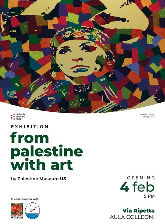 La mostra resterà aperta fino al 24 febbraio con entrata libera. Sarà possibile seguire tutti gli eventi collaterali della mostra seguendo le pagine social del Palestine Museum US e l’associazione Med Art&Cultures.