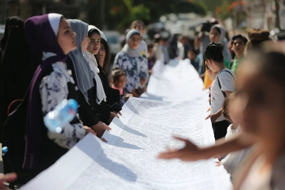 Mercoledì, nel tentativo di evidenziare la sofferenza delle loro famiglie, i figli dei prigionieri palestinesi detenuti nelle carceri israeliane hanno consegnato una lettera lunga 100 metri all’ufficiale della Croce Rossa nella città di Gaza, in cui illustrano le violazioni dell’occupazione contro i detenuti.