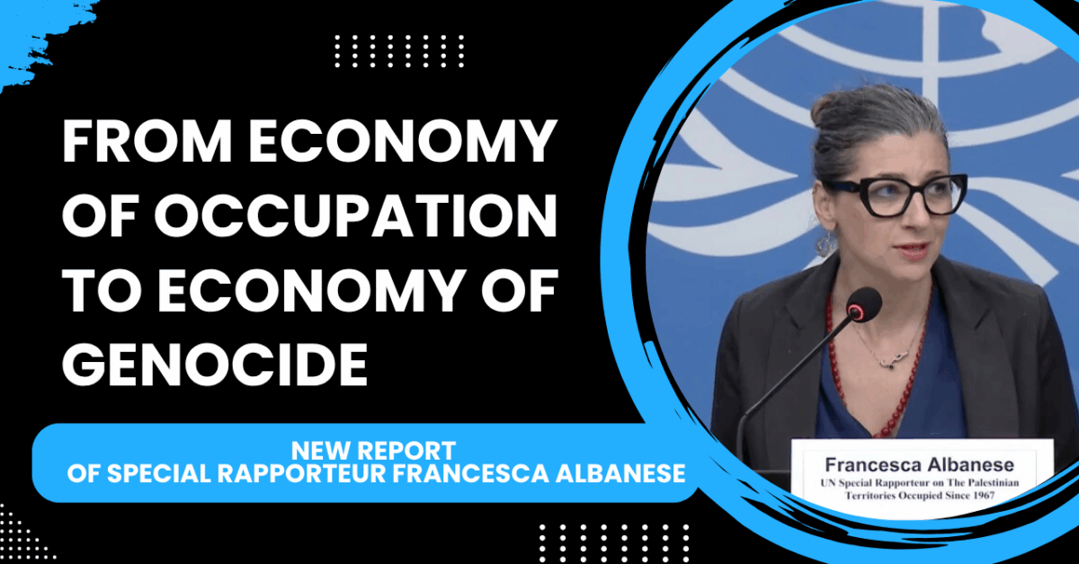 Consiglio per i Diritti Umani Cinquantanovesima sessione 16 giugno-11 luglio 2025 Punto 7 dell'ordine del giorno: Situazione dei diritti umani in Palestina e negli altri territori arabi occupati DALL'ECONOMIA DI OCCUPAZIONE ALL'ECONOMIA DI GENOCIDIO Rapporto della Relatrice Speciale sulla...
