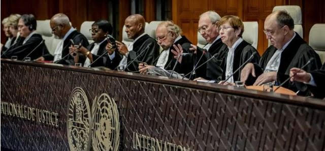 giudici della Corte internazionale di giustizia durante la seduta (Ansa)