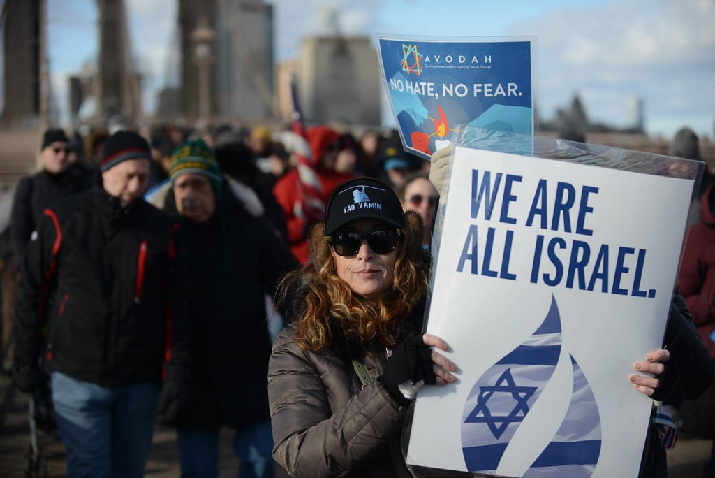 Una manifestazione contro il crescente antisemitismo sotto lo striscione “No Hate, No Fear”, 5 gennaio 2020. (Gili Getz)