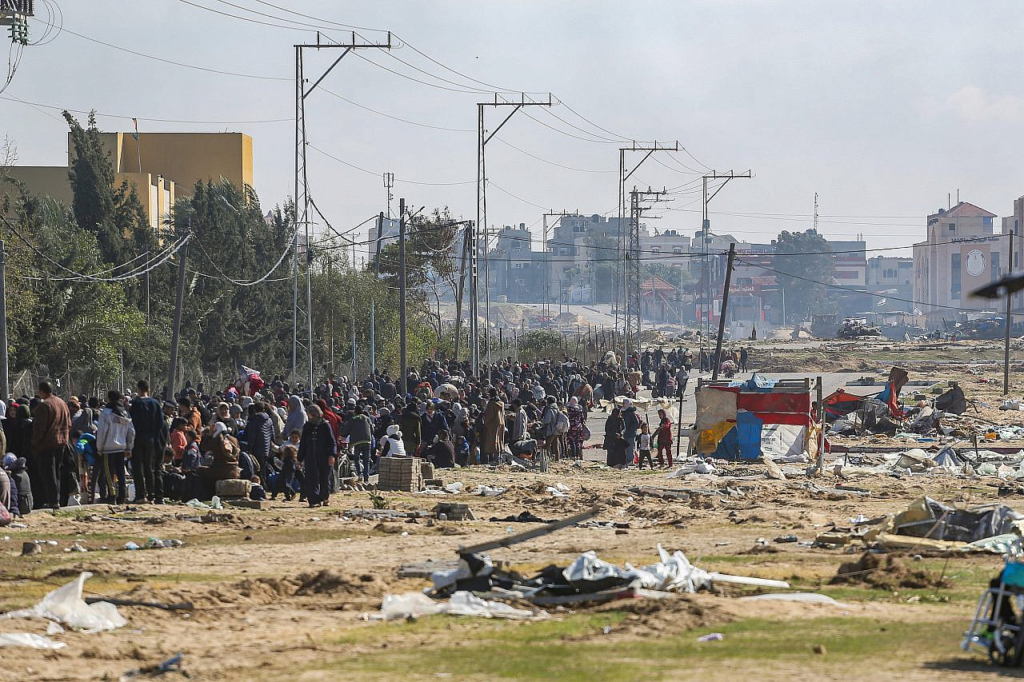 Palestinesi in fuga da Khan Younis, nel sud della Striscia di Gaza, 26 gennaio 2024. (Atia Mohammed/Flash90)