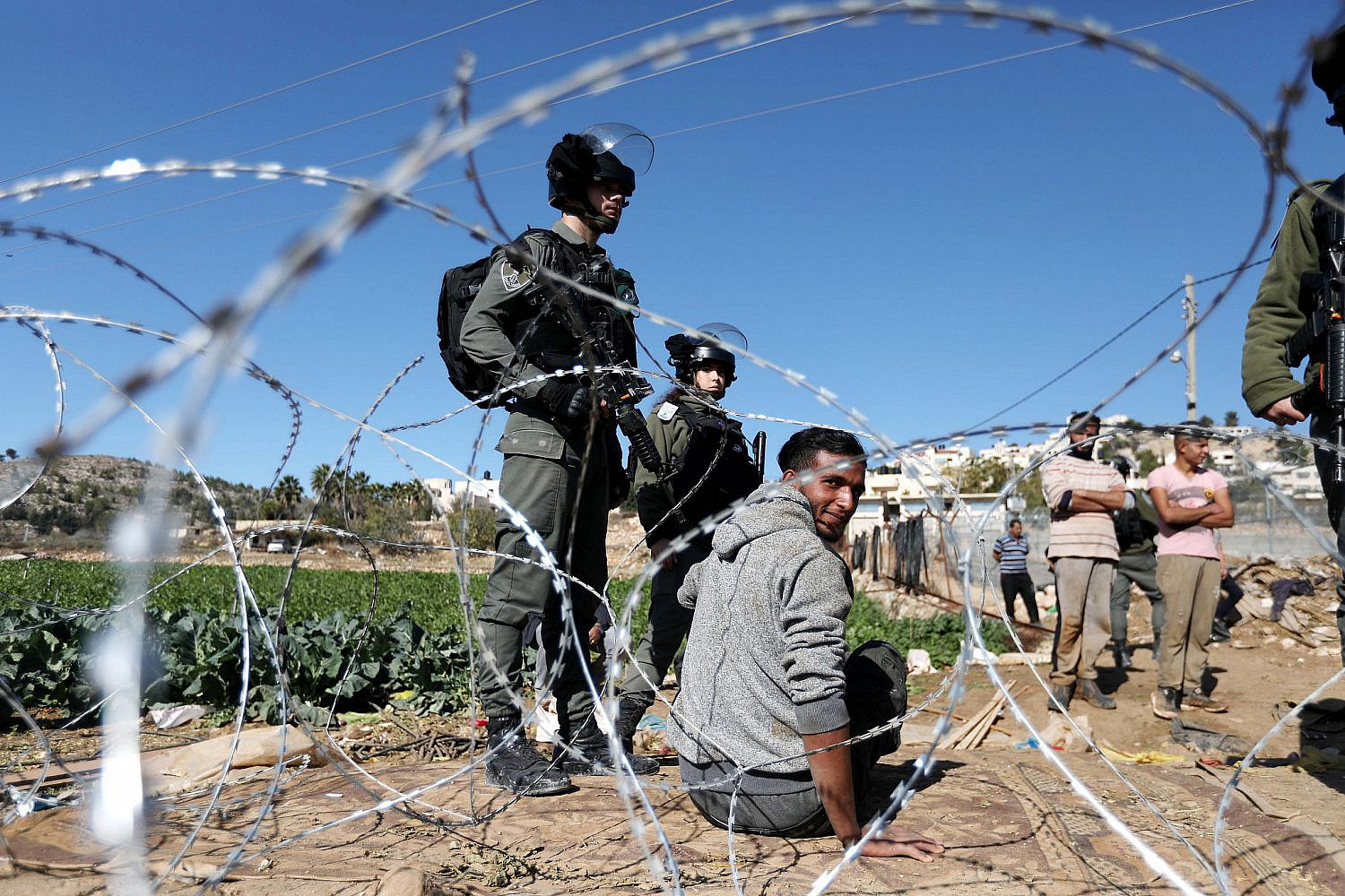 Foto di copertina: Le truppe israeliane trattengono un commerciante di ortaggi mentre sorvegliano i lavori di costruzione lungo una strada principale a sud di Hebron, in Cisgiordania, il 16 dicembre 2019 (Wisam Hashlamoun / Flash90)