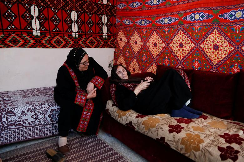 Intisar Muhana, 97 anni, costretta a fuggire dal villaggio di al-Masmiyya durante la “Nakba”, o catastrofe della guerra per l’indipendenza di Israele nel 1948, e la cui casa è stata distrutta da un attacco israeliano nei recenti combattimenti tra Israele e Gaza