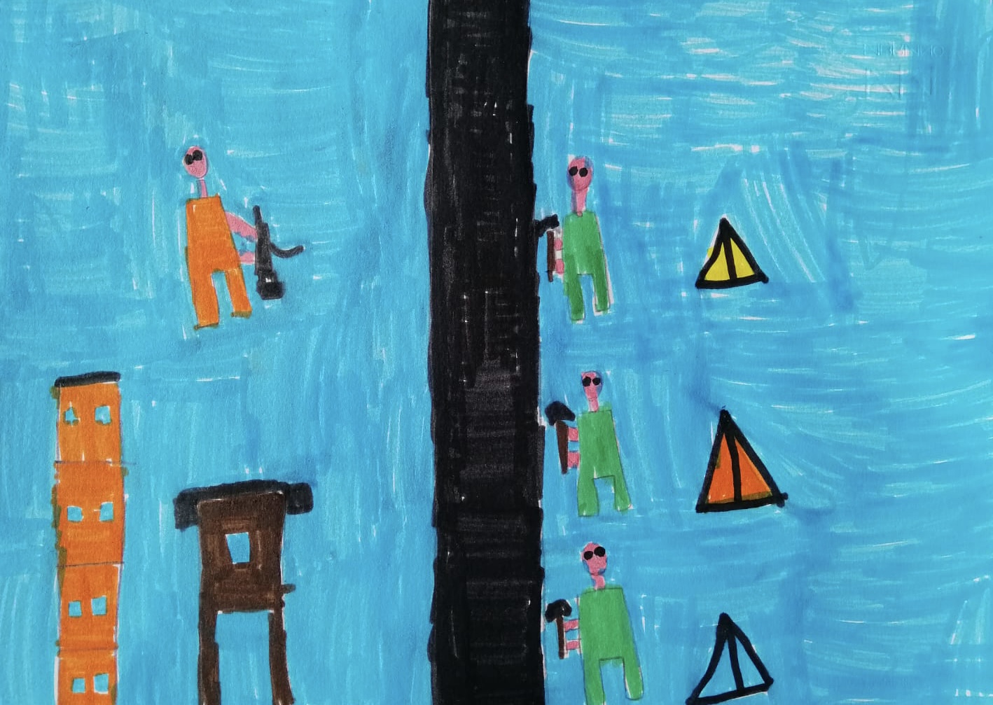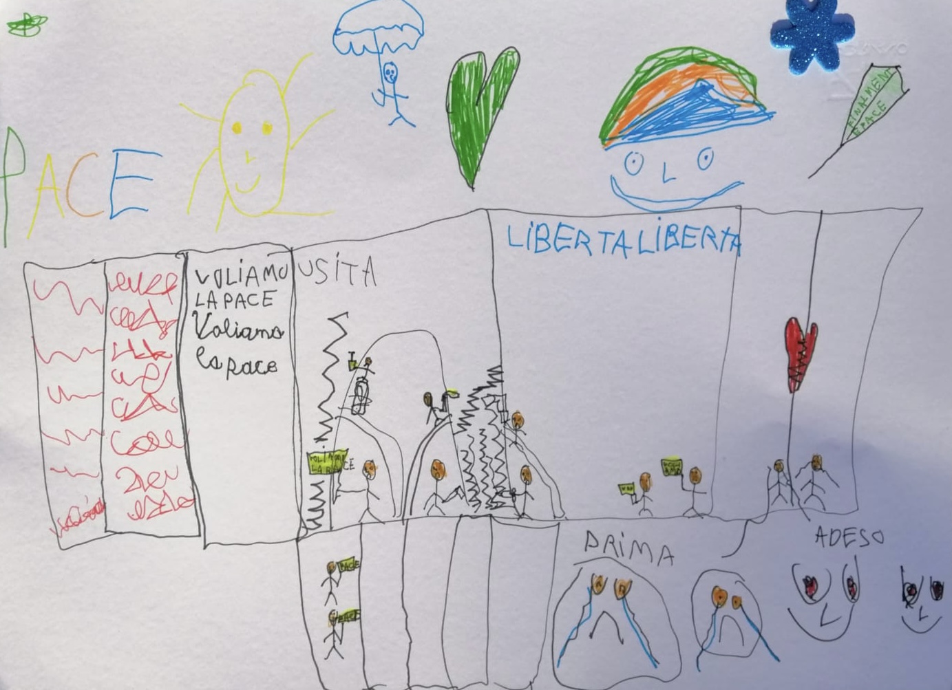I loro disegni sono stati condivisi coi bambini di Betlemme che vivono ogni giorno all’ombra del muro. Anche a loro abbiamo chiesto dei disegni. Molti hanno scelto di ignorare il muro e disegnare altro. Voglia di non pensare all’oppressione? O abitudine e triste rassegnazione?