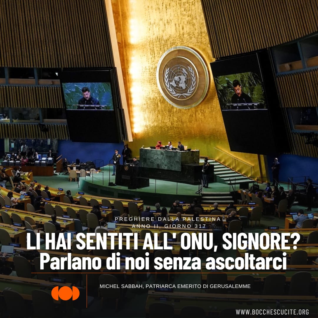Li hai sentiti, Signore, i capi delle nazioni si sono radunati all’ONU? Parlano di noi senza volerci ascoltare, della nostra terra per spartirsela in piani di investimento immobiliare come fosse loro.