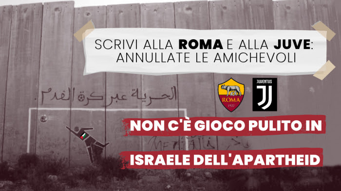 Scrivete subito alla Roma e alla Juve. Non c’è gioco pulito nell’apartheid israeliano.